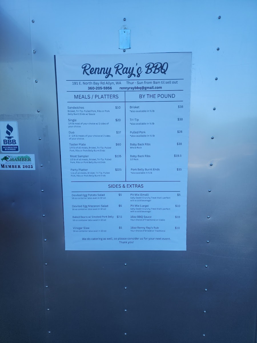 You’ll find the Renny Rays Bbq Menu packed with the kind of smoky comfort food that makes you slow down and savor every bite. Tucked away at 191 E North Bay Rd in Allyn, WA, this spot serves the kind of barbecue that feels both familiar and a little indulgent. As you look through the lineup, the first thing that stands out is the aroma-rich, slow-cooked meats that practically melt before you even dig in.